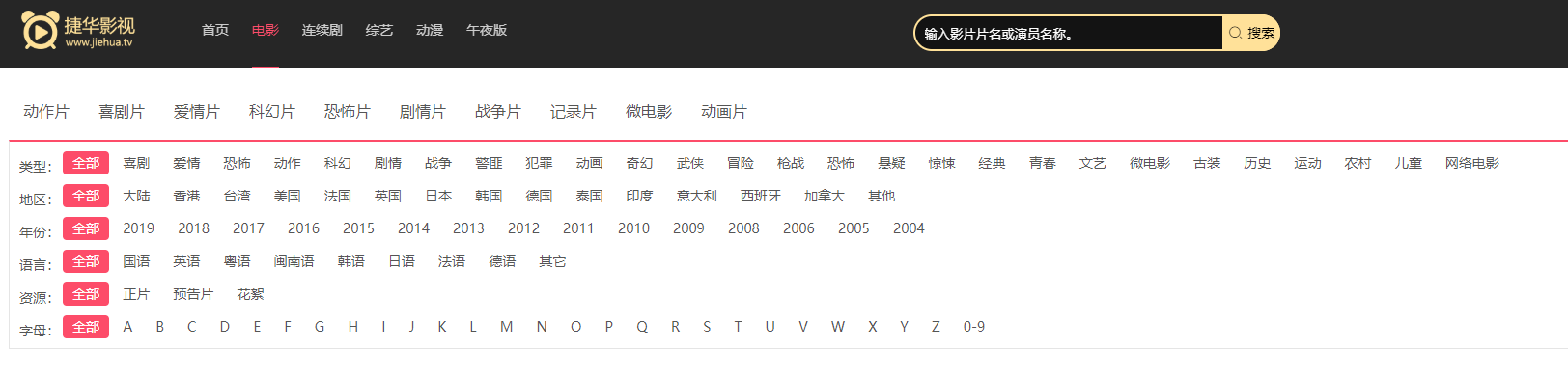 点击【更多】则为您展开该分类下的导航页面,你可以根据你喜欢的类型影片进行检索。如下图: